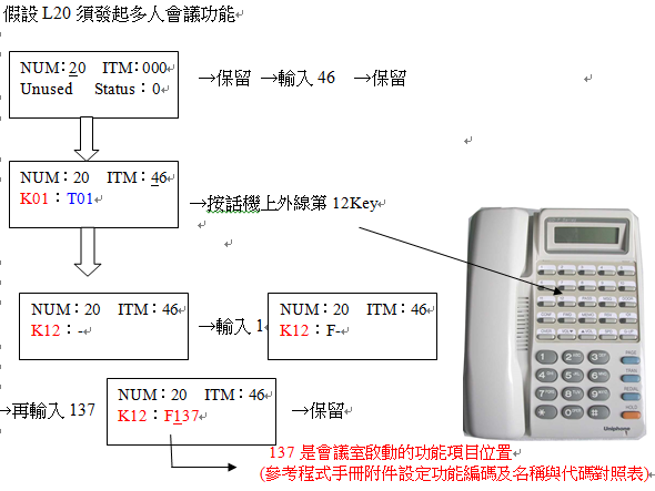 呼叫其他分機再按F137功能鍵二次加入會議,